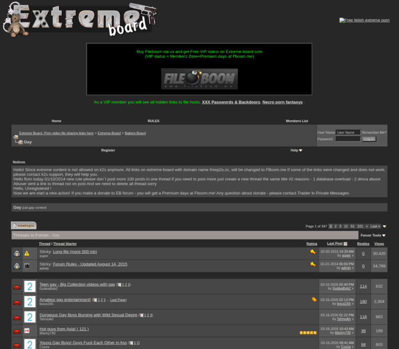 • Massive collection of gay extreme porn Easy to navigate, especially if you're familiar with forums Active and lively community of pervs No ads to interrupt your browsing experience Detailed video descriptions and screencaps for a sneak peek