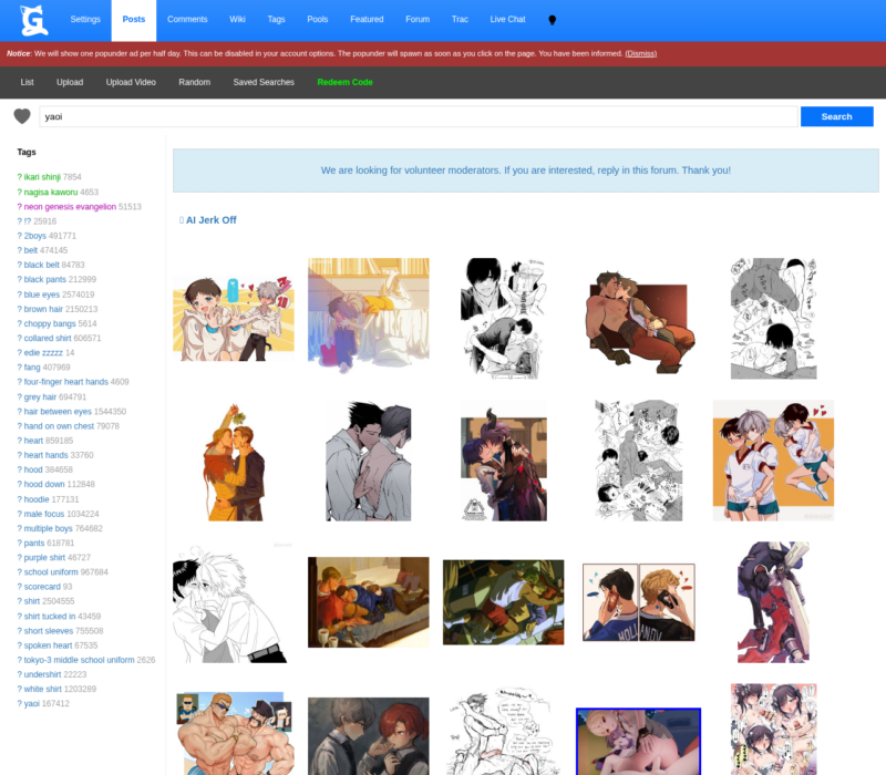 Gelbooru is a leading hentai site catering to anime enthusiasts, offering a vast collection of animated fantasies with a particular focus on yaoi, featuring over 99,000 images. The site has been a go-to destination for over a decade, attracting over 25 million visitors monthly. It provides a platform for artists to showcase their creativity and for users to explore various genres, from sweet moments to wild action. The site functions like a search engine, using a tag system for navigation, and includes an active forum for community interaction. Despite some minor issues like ads and occasional tagging errors, Gelbooru remains a treasure trove for those who love to indulge in animated fantasies.