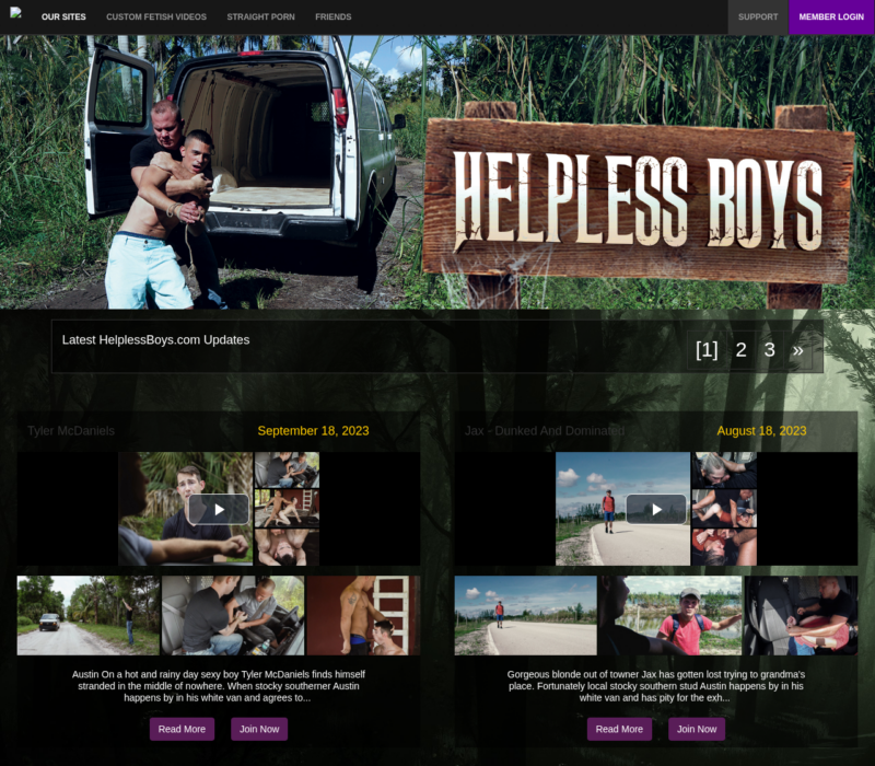 Helplessboys.com is a premium gay porn site featuring the Helpless Boys series, part of the Fetish Network. It offers high-quality, professional productions with a focus on kidnapping fantasies. Users can access a variety of series, including Busted Boys and Boy Creeper, with both gay and straight content available. The site requires a monthly subscription of $39.95 or an annual plan of $199.92, providing access to all current and future series. With a clean, ad-free layout and detailed video previews, Helplessboys.com ensures a seamless and exciting user experience. A 2-day free trial is available for new users to explore the content before committing.