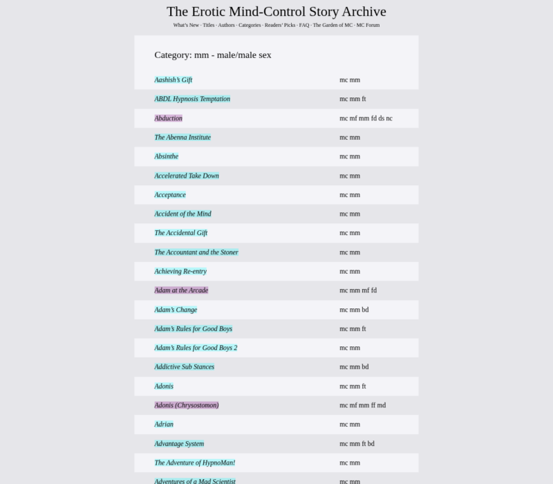 Mcstories.com is a treasure trove of adult stories, offering a vast collection of narratives that cater to diverse fantasies. Despite its outdated design, the site boasts high-quality content, with a focus on mind-control themes and a significant section dedicated to male-on-male action. The site's curator ensures top-notch stories, and writers are encouraged to submit their work, fostering a creative community. While the site lacks advanced filtering and tracking features, its forums provide a vibrant space for readers and writers to connect. With weekly updates and a dedicated following, mcstories.com is a hidden gem for those seeking to spice up their adult entertainment through reading.