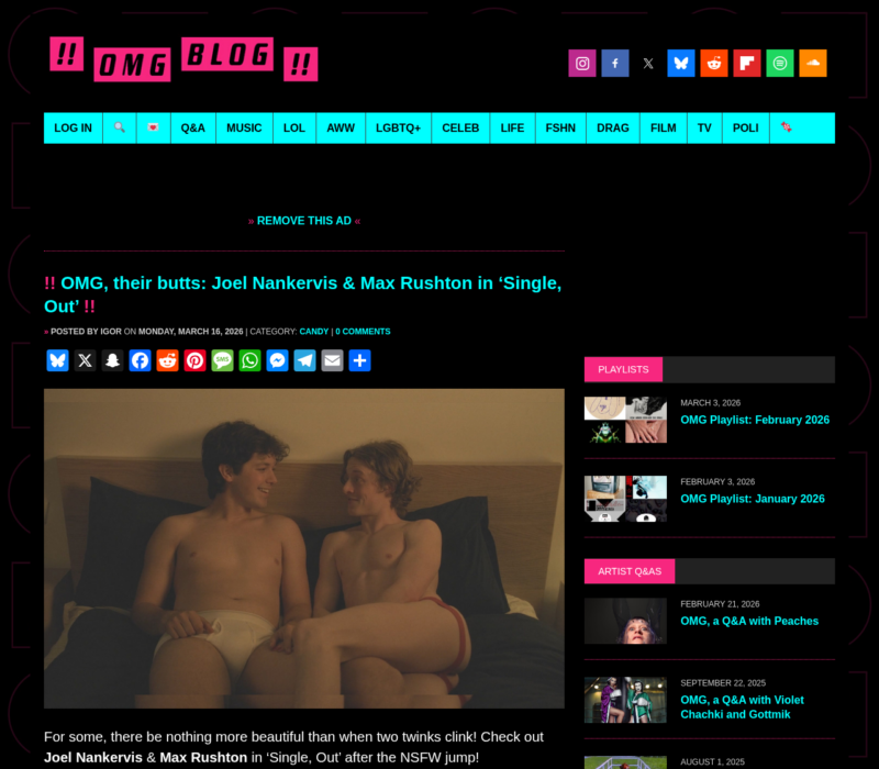 Omg.blog, a 20-year-old site, offers a mix of blogs about male actors, celebrities, and random topics. With over 20,000 articles and daily updates, it's a photo-heavy site that redirects to external links. Despite its name, it's not strictly gay-themed and lacks depth, making it more of a clickbait platform than a news or porn site. The site uses tags for easy navigation and includes some bizarre content, like interviews with cross-dressers. While it provides fresh content daily, it's not unique and doesn't offer anything better than similar sites.