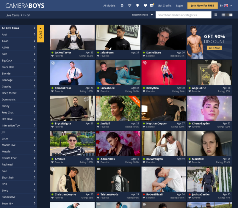 • Free registration means you can explore without any initial commitment. A wide variety of hot hunks and cute twinks ensures there's someone for everyone's taste. Performers are enthusiastic and love to masturbate and fuck, making for some incredibly steamy shows. The site offers a range of categories, from solo performances to threesomes, catering to diverse preferences. New subscribers get 10 free minutes with a favorite cam boy, a great way to test the waters. Profiles provide detailed information about performers, helping you make an informed choice before diving in.